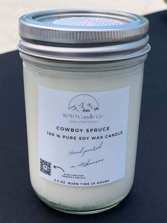 Cowboy Spruce – Mason Jar Candle (5.5 oz) | Rugged, Woodsy, Clean | Clean Soy, Pet-Safe, Hand-Poured