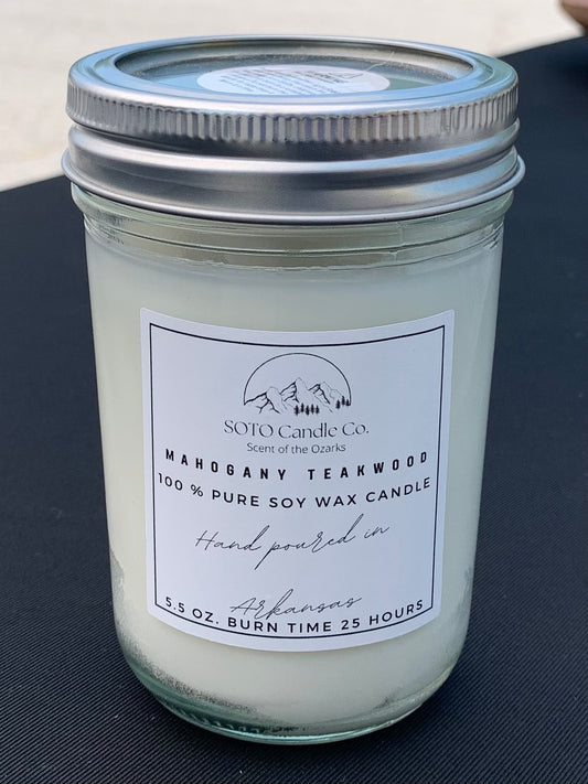 Mahogany Teakwood – Mason Jar Candle (5.5 oz) | Clean, Masculine, Classic | Clean Soy, Pet-Safe, Hand-Poured