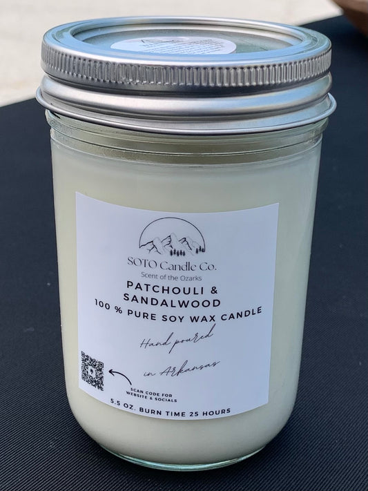Patchouli & Sandalwood – Mason Jar Candle (5.5 oz) | Earthy, Spiced | Clean Soy, Pet-Safe, Hand-Poured