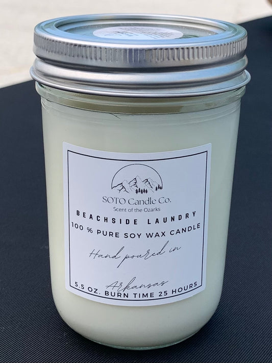 Beachside Laundry – Mason Jar Candle (5.5 oz) | Fresh, Coastal, Clean Linen | Clean Soy, Pet-Safe, Hand-Poured