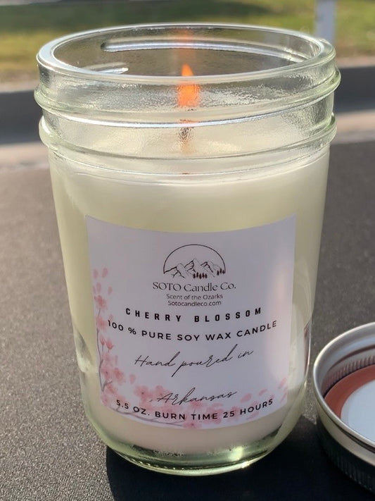Cherry Blossom – Mason Jar Candle (5.5 oz) | Soft, Floral, Delicate | Clean Soy, Pet-Safe, Hand-Poured