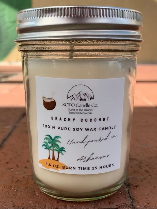 Beachy Coconut – Mason Jar Candle (5.5 oz) | Creamy, Tropical, Vacation Vibes | Clean Soy, Pet-Safe, Hand-Poured