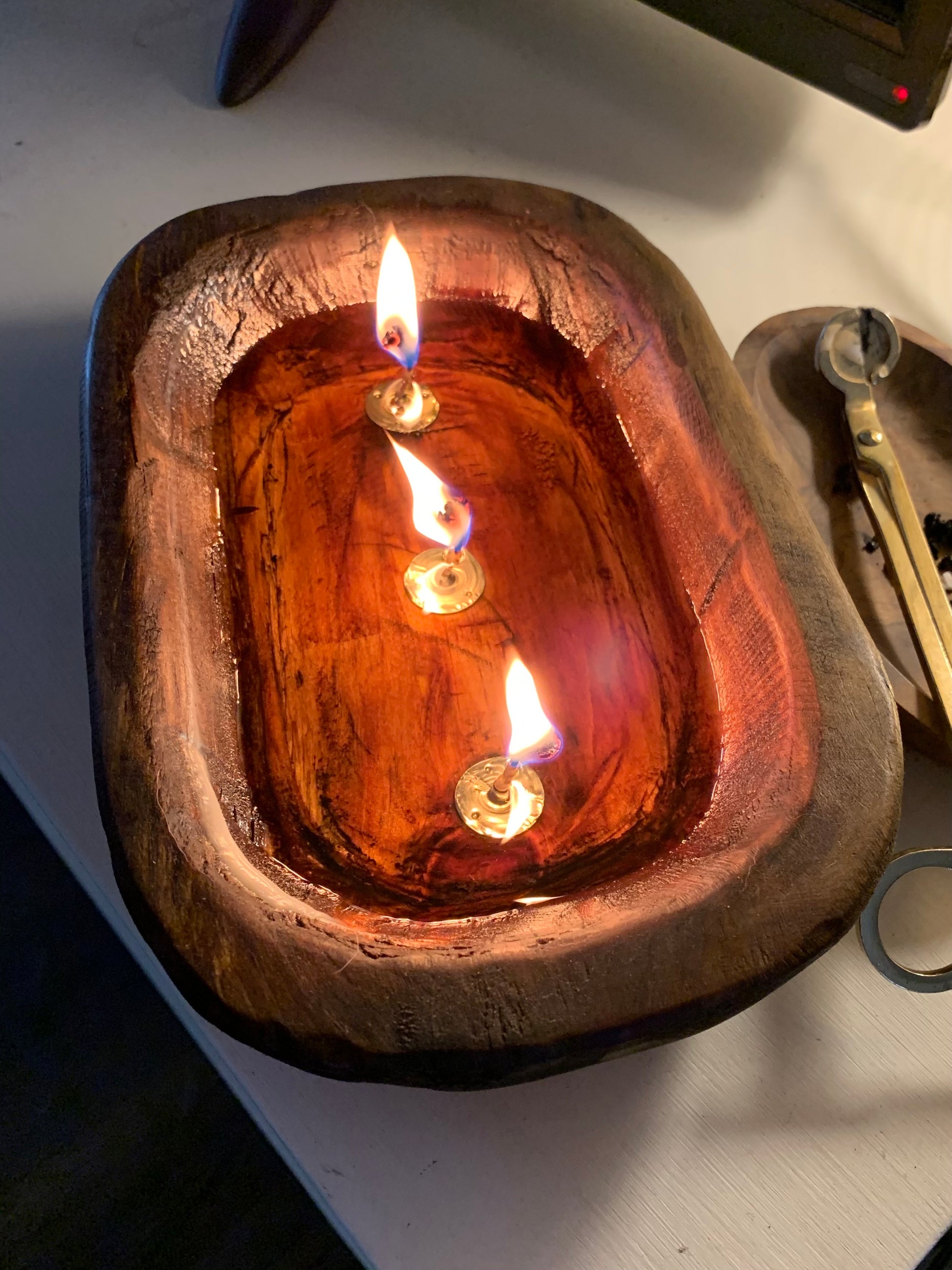 Hand-poured into our classic 3-wick dough bowl, carved from real wood and sealed with a flame-resistant, candle-safe coating. You get to choose your finish — natural wood stain for a rustic look, or painted white for a soft, airy touch. Every bowl is filled with 100% pure soy wax, clean, certified fragrance oils, and cotton wicks for 20–25 hours of safe, non-toxic burn time.