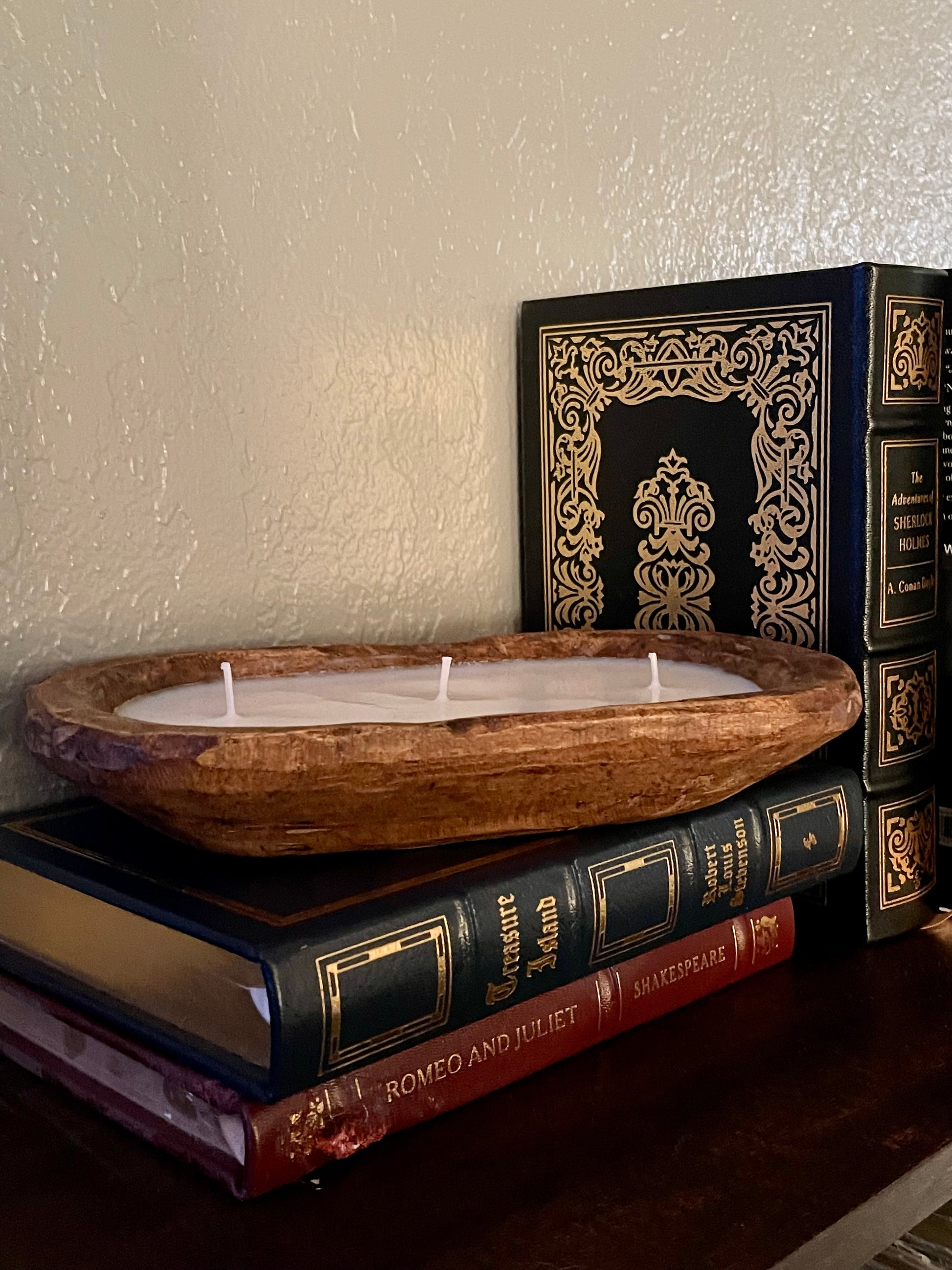 📸 Note: Product photo shown is representative of the dough bowl shape. All scents use the same size and style of bowl. Wood grain, wax tone, and finish may vary slightly — each one is uniquely beautiful.